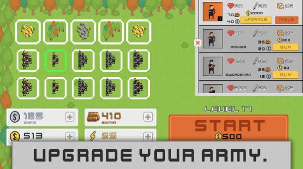 壮大军队最新版是一款非常讲究策略的像素战争游戏,这是属于你的自己的军队时代,不断的招募士兵升级士兵来建造你的军队,简单轻松搞定放置玩法让你感受最简单的游戏内容,用你的智慧去安排你的军队合理站位,不断的挑战取得一场又一场的胜利,丰富的士兵种类等你完整,不同的士兵拥有不同的特殊能力,训练它们拥有更加强大的战斗力。