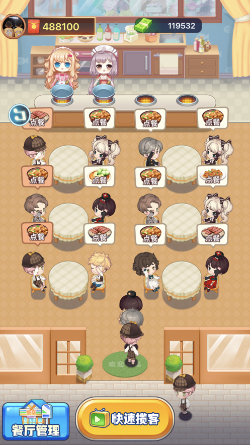 我的餐厅红包版官方正版是一款模拟经营类型的游戏,玩家在游戏中经营一家餐厅,你需要请很多的厨师,雇佣很多的员工做出美味的食物,这样客人就会被吸引来,你可以获得很多利润。赚钱后记得升级餐厅,扩大规模。这样才能保持一直盈利。