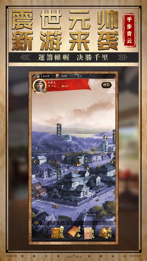 震世元帅最新版是一款很有特色策略战争类型游戏。玩家将会来到一个列强入侵华夏的乱世开始战斗,通过自己的智慧找到更多的资源,装备自己的部队,让自己成为这个世界中最强大的战士,未来会充满挑战,只有不断的提升自己的部队战斗力,玩家才能统治更多的地盘。