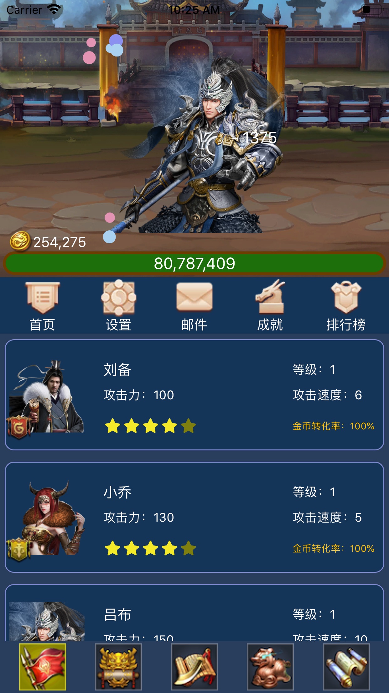 风云霸主游戏是一款以三国为题材的文字挂机手游,玩法比较休闲,没有那些硬核的操作,主要是以收集和养成为主,文字和图文结合,配上具有代入感的场景,将三国的氛围完美的展现出来。玩法比较佛系,你可以在游戏中收集也培养三国中的武将和谋士,然后搭配天赋还有相应的技能,征战四方,通关各种副本获得更多资源,强大你的队伍!