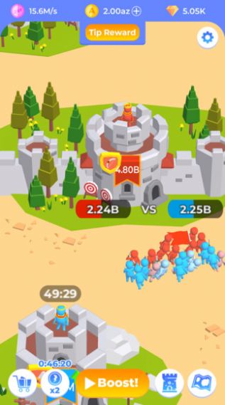 3、为了打败敌人并捍卫围攻,不断更新和发展你的城堡,强大的武器只需一击即可摧毁你的城堡。