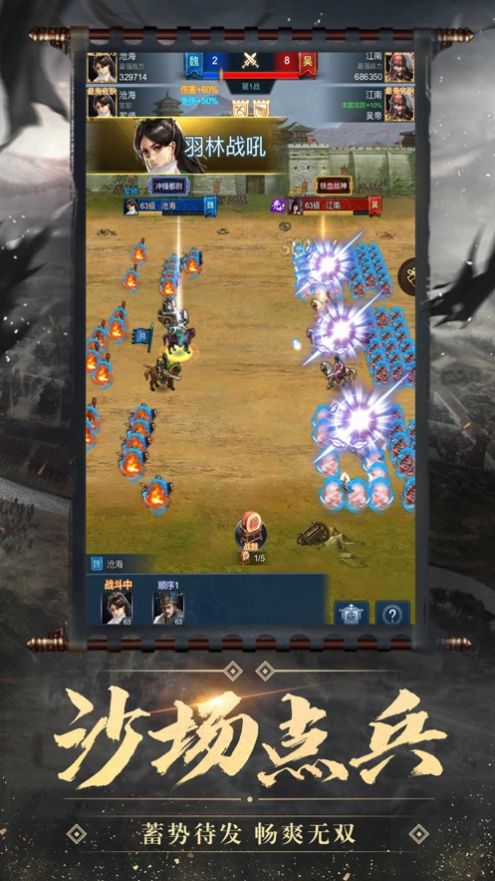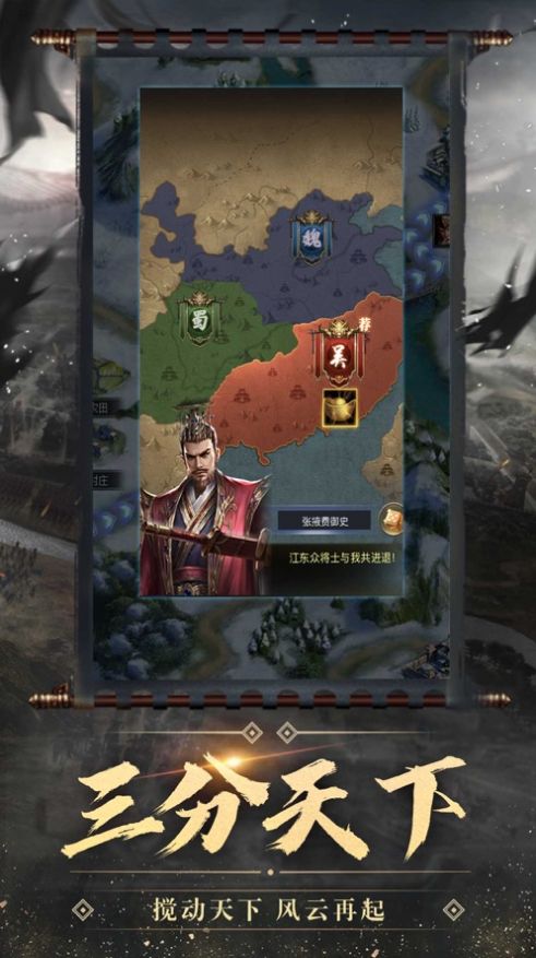 1、经典三国题材,全新战争策略玩法,成为一方霸主,有自己强大的军队。