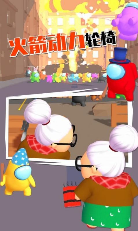 2、奶奶的轮椅是特殊的火箭动力轮椅,场面非常滑稽!游戏玩法非常多;
