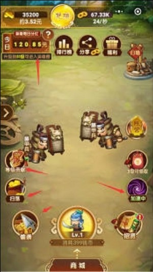 1、玩家在这里可以通过放置合成的方式来进行闯关升级,同时也会提升自己的收益情况。