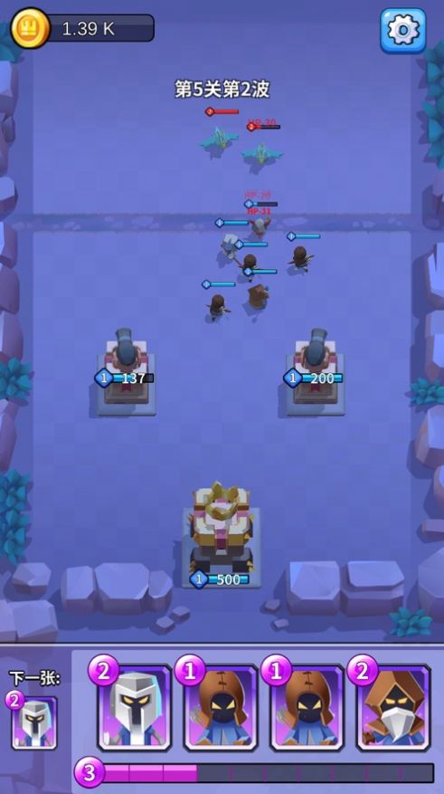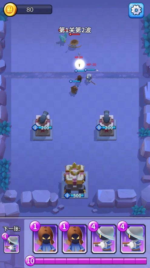 2、每一关里面有一波一波的敌人来进攻,不断的修复自己的防御堡垒;
