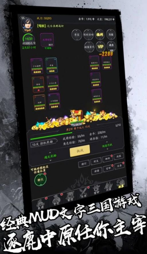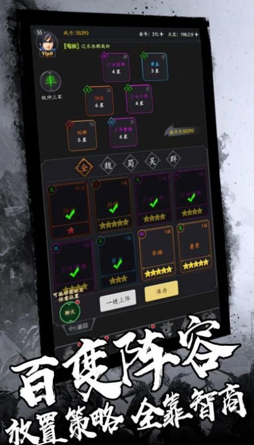 绝世三国文字版是一款三国题材的文字放置类游戏,在这里用了简单的文字,演绎了与众不同的三国战争,轻松简单的挂机玩法,并没有什么复杂的地方,你必须更全面的进行把握,掌握最直接的竞技玩法,搭配不同的武将,组合强悍阵容,征战三国战场。