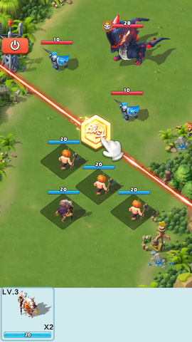 3、玩家通过不断拖动两个相同的单位合成一个更高级的单位来获得更大的战斗力或者资源加成。