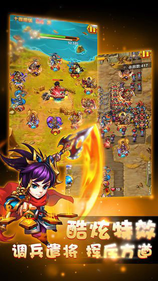 神话塔防安卓最新版是一款超级好玩的策略塔防类游戏,玩家可以通过不断升级自己的炮台来提高炮塔的攻击力,强大的攻击力是抵御敌人的最佳方式,游戏里面有几十种不同的英雄等待着你的招募,去招募更多的英雄战士来不断完善自己的阵容,完成任务挑战去获取那些制作稀有神器的材料,将所有的材料全部收集起来。