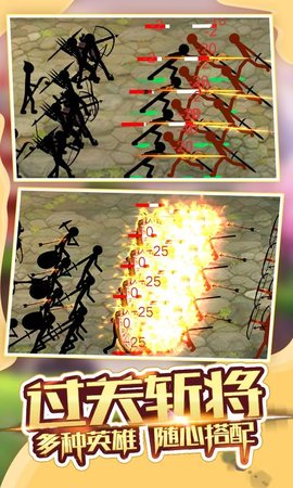 3、本方的火柴人都是黑色的,敌方的都是红色的,玩家在战场上可以清晰地分辨出区别。