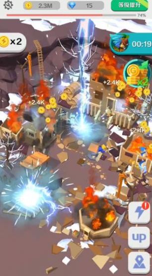 2、玩家只需不但点击屏幕召唤雷电,对房屋进行攻击即可。