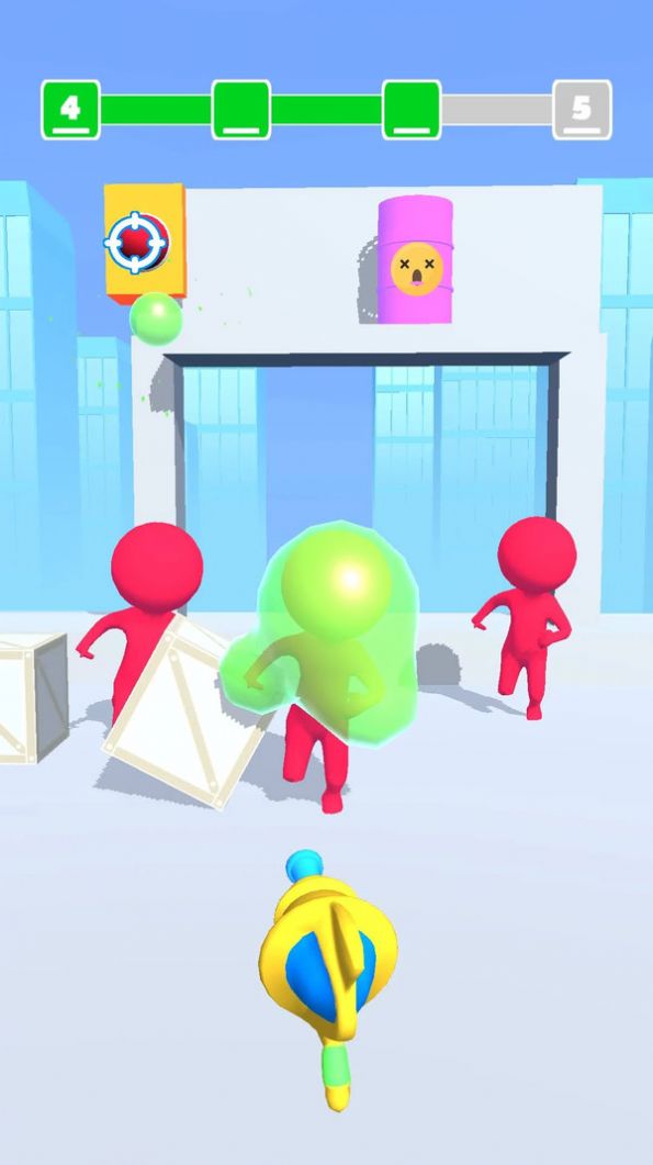 1、不同颜色的橡皮人,代表不同玩家,需要发射气泡去裹住对手,将敌人都制服,需要在发射器中投注特殊的肥皂水原材料。