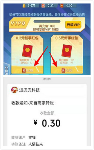 2、新人试玩或拿到0.3元红包,再挂机几分钟得到0.5元红包;