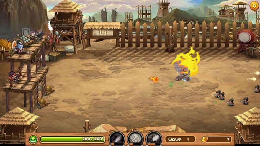 1、只需要转动箭头就能够调整石块的发射方向,然后点击按钮就能够发射出去。