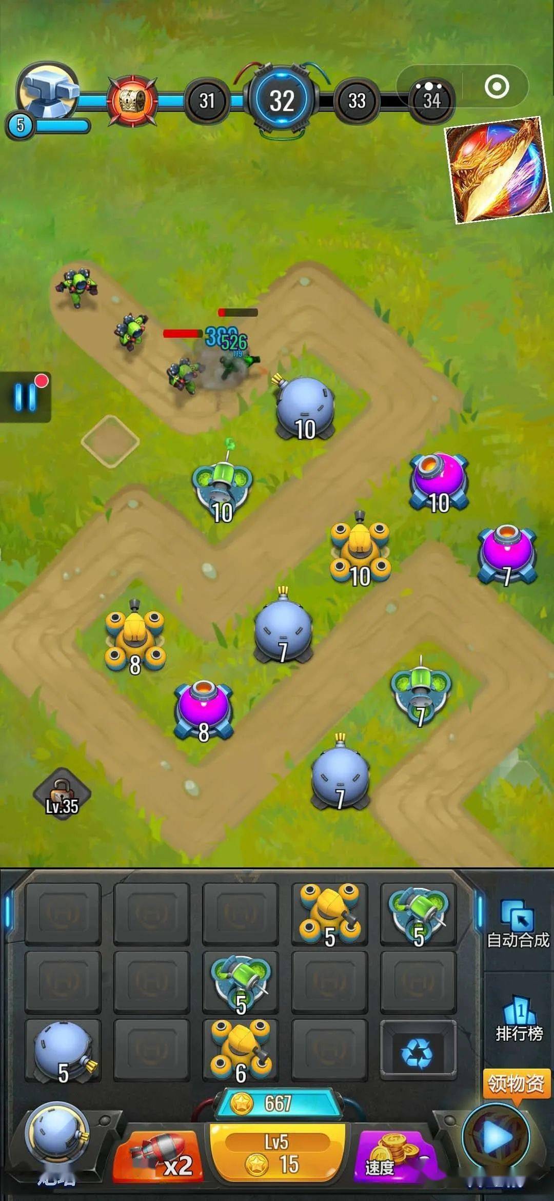 2、合成炮台时注意先后顺序,攻击频率快的炮台优先合成,特殊属性的炮台可以留给BOSS;