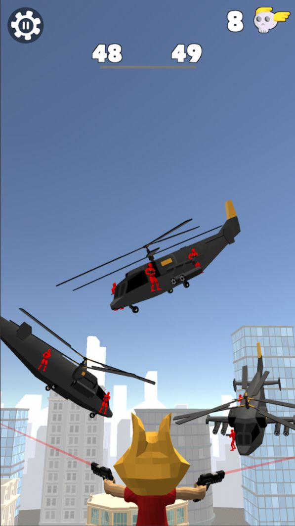 吊索飞行射手游戏是一款在空中滑行来干掉红色目标的游戏,本来静止的瞄准射击就是有一定难度的,因为需要精准平稳的压枪,这样在空中滑行,还要用手指精准的找到远方的红色敌人,再精准的射击,那将会是一个非常具有挑战的事情,需要玩家找到自己的射击策略。