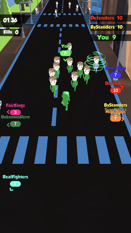 战争城市人群战争最新版的游戏玩法非常的有趣,在这个城市中,你需要想办法招募更多的小弟,因为你的对手会带着庞大的人海军团来消灭你,在你实力不够强的情况下一定要暂避锋芒哦,猥琐发育才能让自己更快的壮大起来,将所有的对手打败。