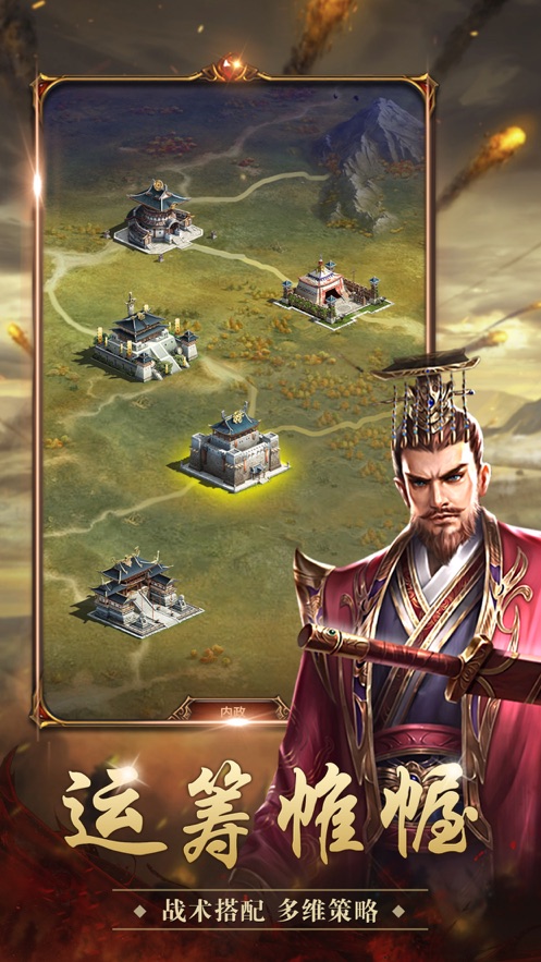 乱世三国称霸中原游戏是一款非常好玩的三国题材策略战争游戏。你想要成为千古一帝吗?在这个世界发挥你的智慧,运用你的能力开始自己的帝王霸业吧,你能够使用所有的资源,尽可能招募更多的名家谋士为你出谋划策,让你在战斗中能占尽先机,招募实力强大的武将,让你的部队有名将带队,战斗士气高昂,你的士兵更有勇气,杀敌的时候不怕死亡。