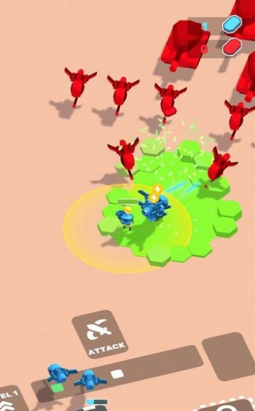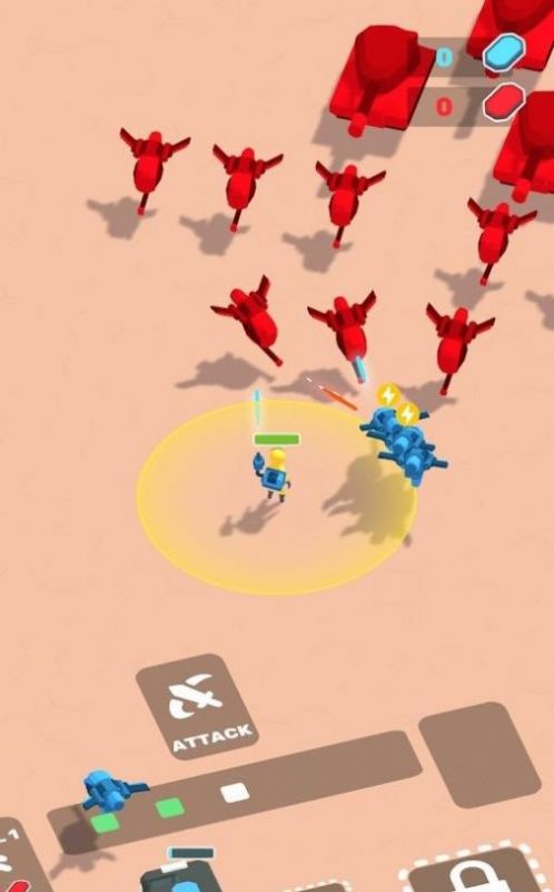 1、开局单枪匹马,只能孤军奋战,随意滑动屏幕消灭敌人,获得能量块。