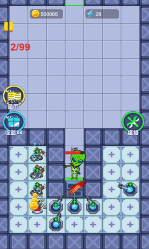 1、随着防御塔等级的提高,你的火力也非常猛烈,完成任务的速度就越快。