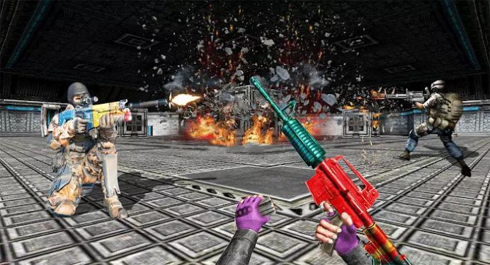 2、火爆枪战对决,运用技术消灭敌人闯关成功。