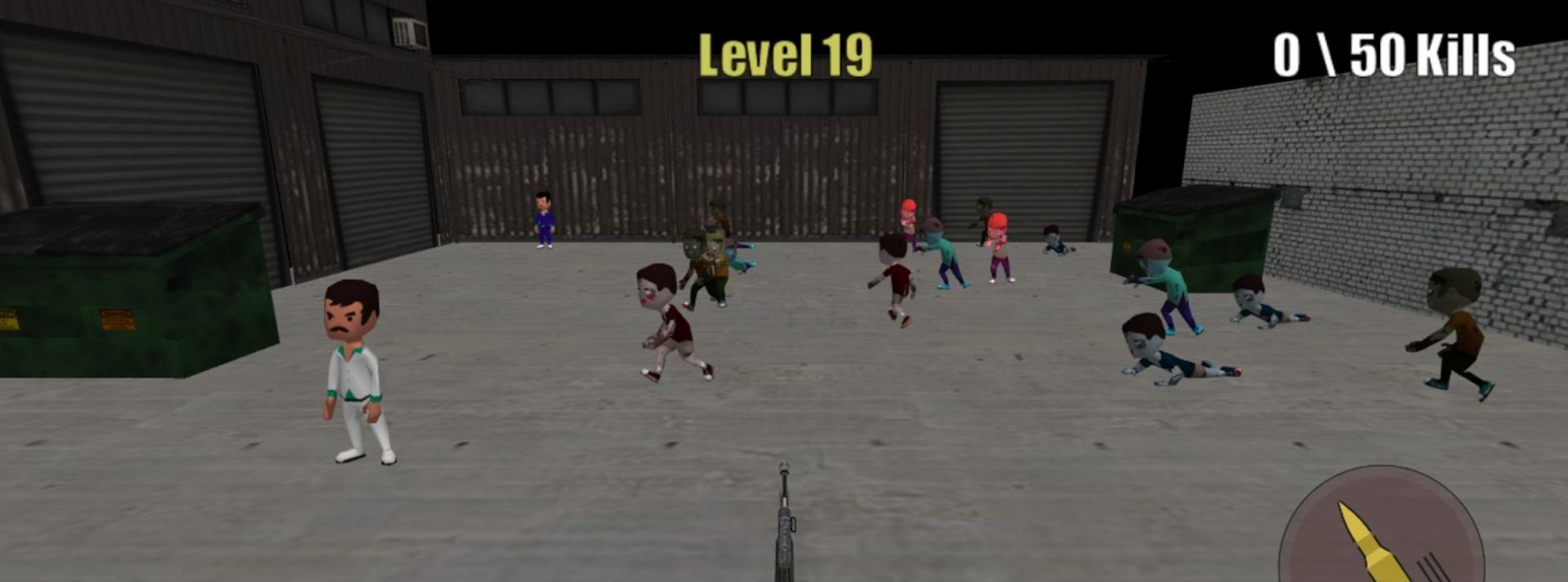 2、点击或长按右下角的虚拟键,开枪射击,击败僵尸潮。