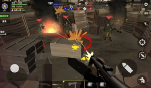 3、找到掩体,举起你的冲锋枪,扫射躲在掩体后的敌人,将他们一网打尽。