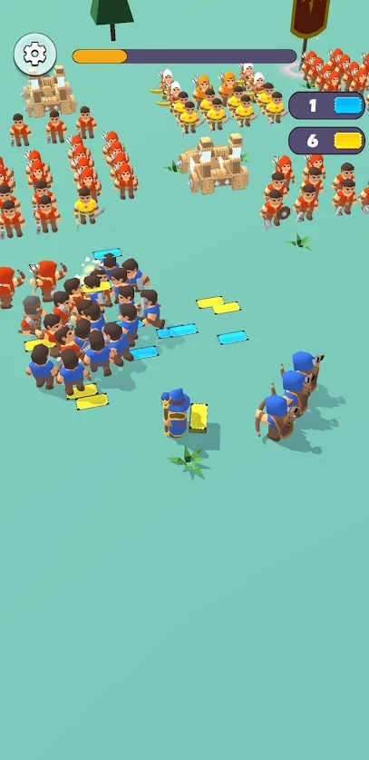 1、玩家通过滑动虚拟操作杆移动人物收集更多的战筏资源。