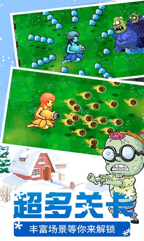 2、搞笑的趣味闯关玩法,玩家们需要放置不同的植物道具来抵御僵尸的前进。