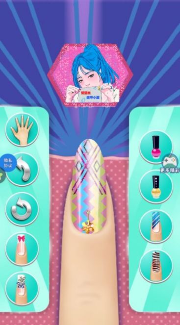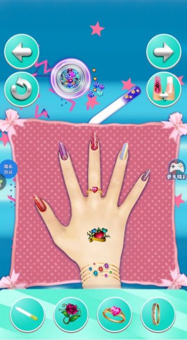 选择自己喜欢的指甲油、花纹贴、可爱指甲贴以及装饰等帮爱丽丝做一个美美的美甲