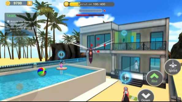3、玩家玩蚊子,可以飞到任何地方。杀虫剂、苍蝇和手掌会攻击你。