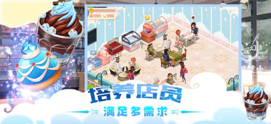 3、卡通的画风,玩家将经营一家甜品店,你可以制作各种各样的甜品来接待不同的顾客。