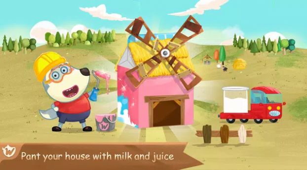 与 Wolfoo 和他的朋友一起使用熟悉的材料(如西瓜池、牛奶箱风车和冰激凌冰屋)创建许多有趣的结构。