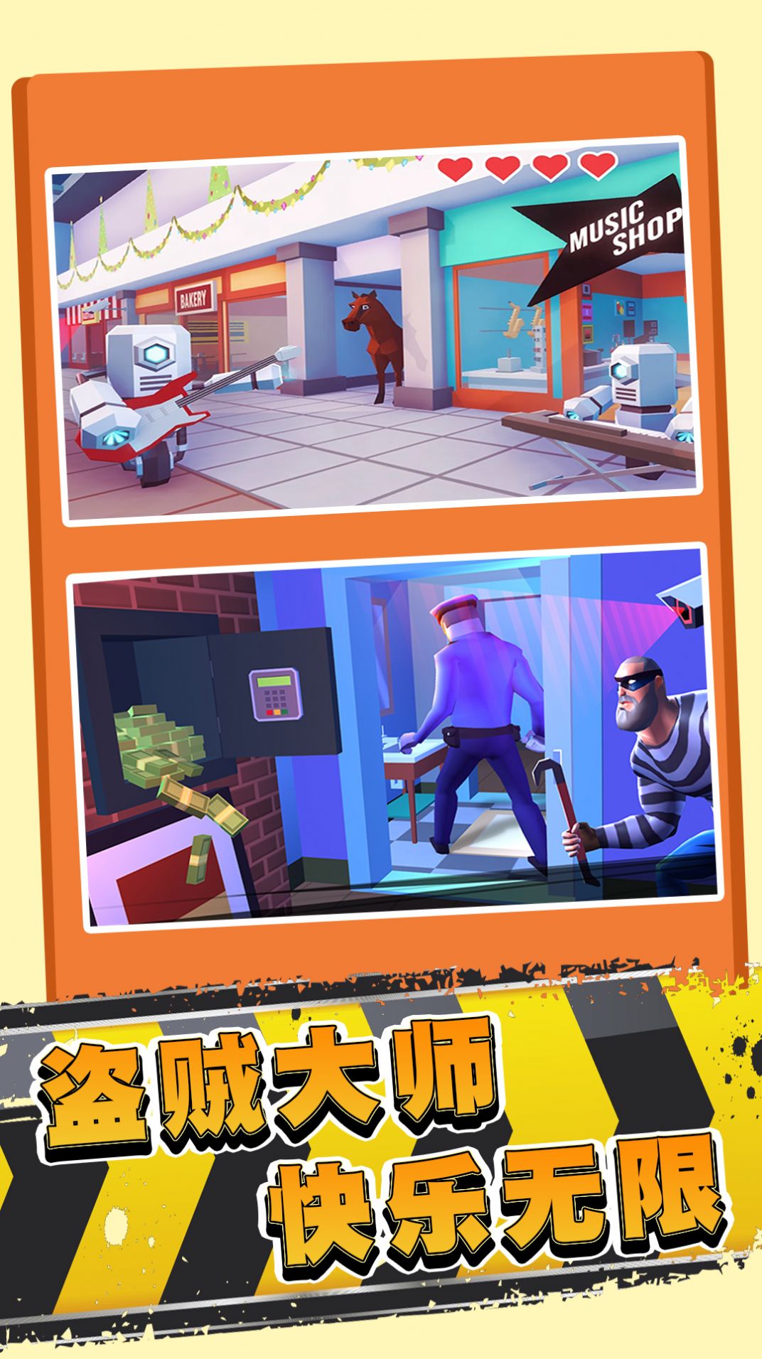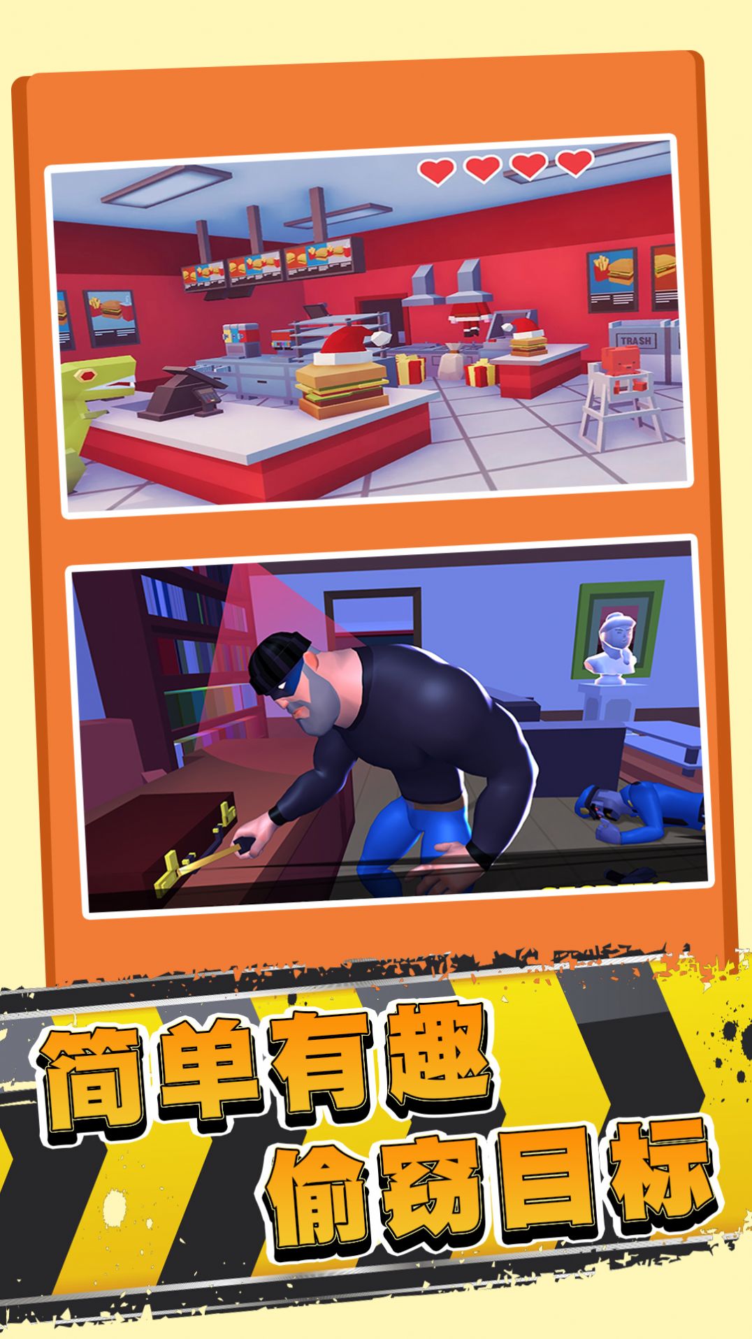1、游戏的设定是很有趣,在游戏中,玩家将扮演盗贼的角色进行偷窃。