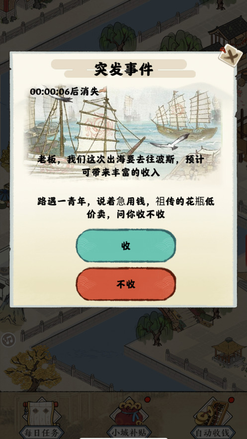 2、超繁华的古风地图加上不一样的游戏玩法,你可以在游戏的前期通过满满的经营自已的小店来获得收入;