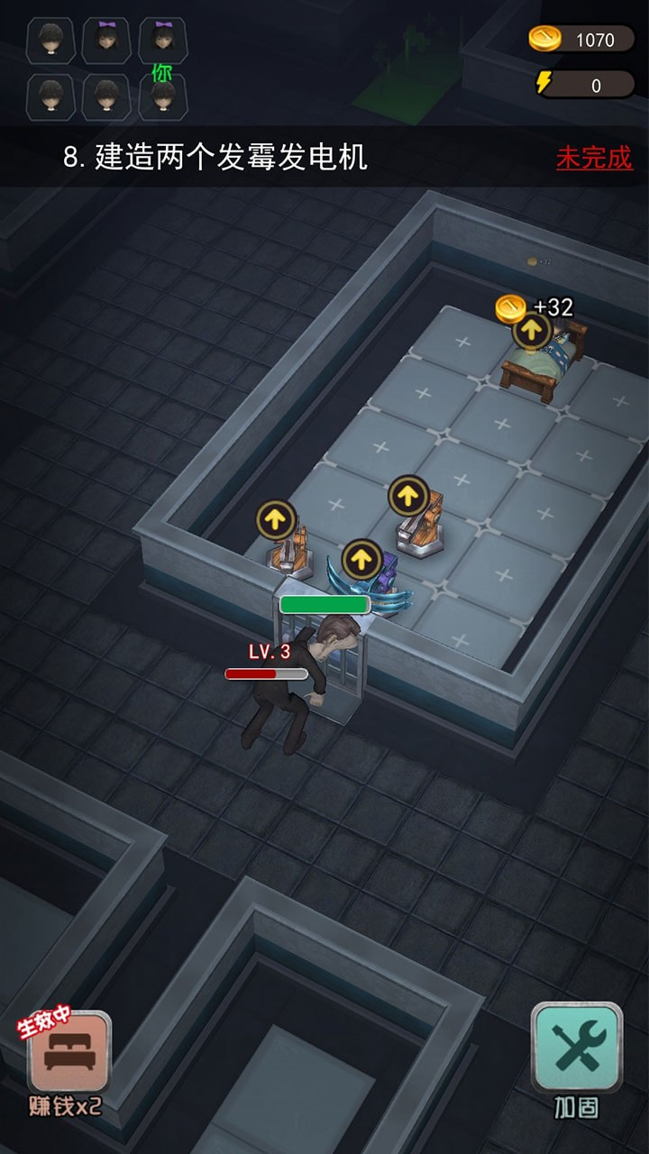 2.守护者:玩家需要通过躺下睡觉获得金币,以便建造各种建筑,从而获得更多资源。