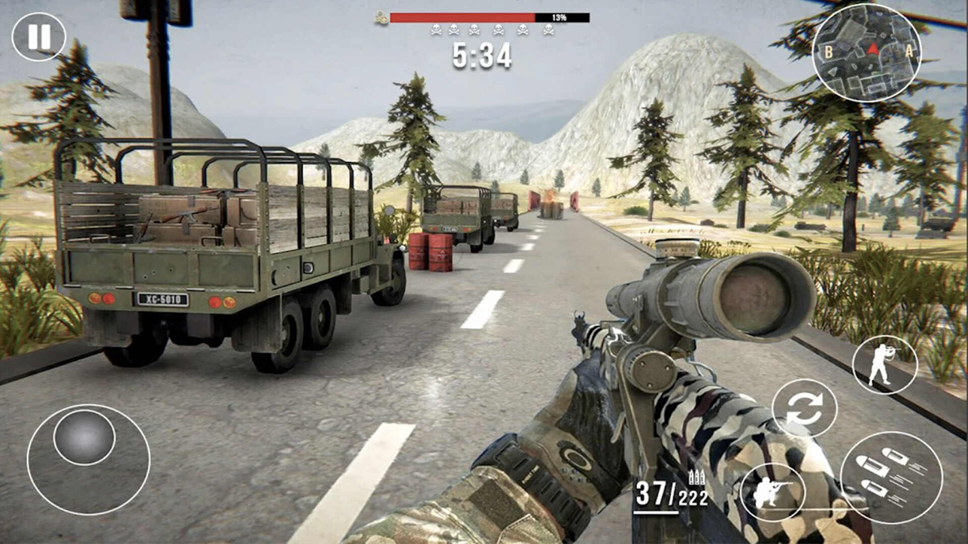 1、在逼真的3D环境中触发狙击步枪和突击步枪,疯狂射击,然后从奖励中获得更多物品和武器。