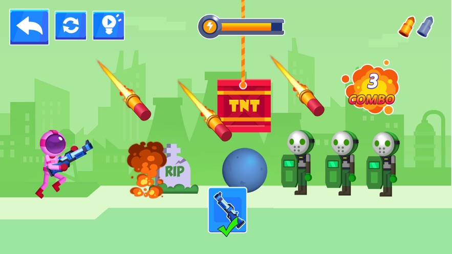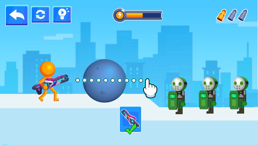 3.橡皮人拿起武器射击,让你完成各种挑战任务,面对不同层次的不同敌人。