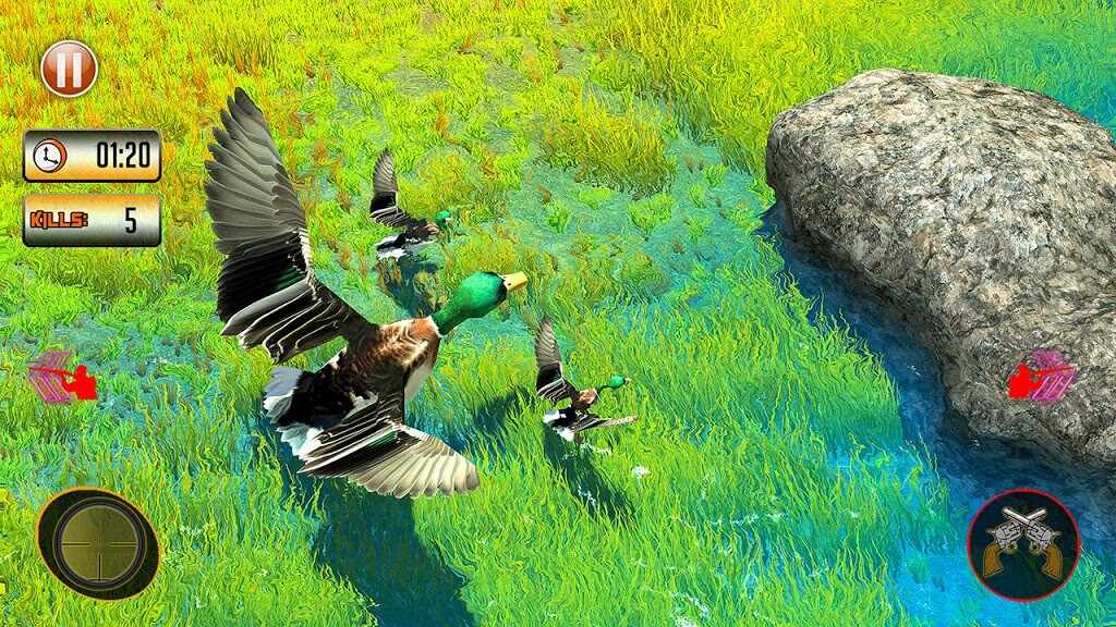 1、在游戏里玩家可以选择不同的枪支武器对鸭子进行狩猎,各种各样种类的鸭子应有尽有。