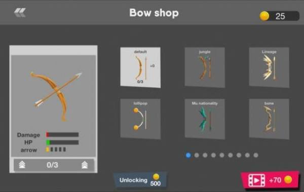 使用不同款式的弓箭完成的闯关过程给玩家带来的闯关体验都是完全不一样的哦!