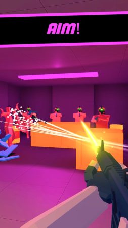 1、激光人群射击中玩家能够以第一视角进入,解锁不同的枪类射击目标,发射的不是子弹而是激光。