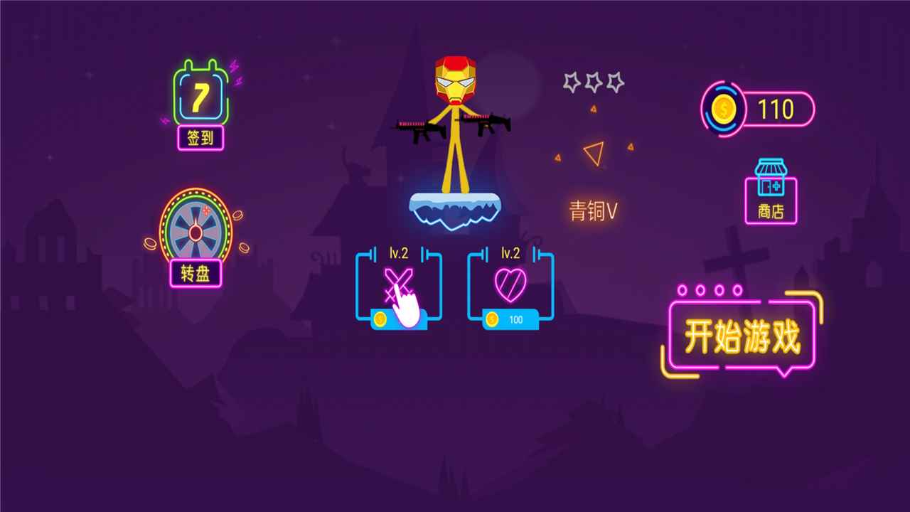 各种炫酷的火柴人角色和ユニーク造型的皮肤,更加强大的角色拥有更大的攻击力。