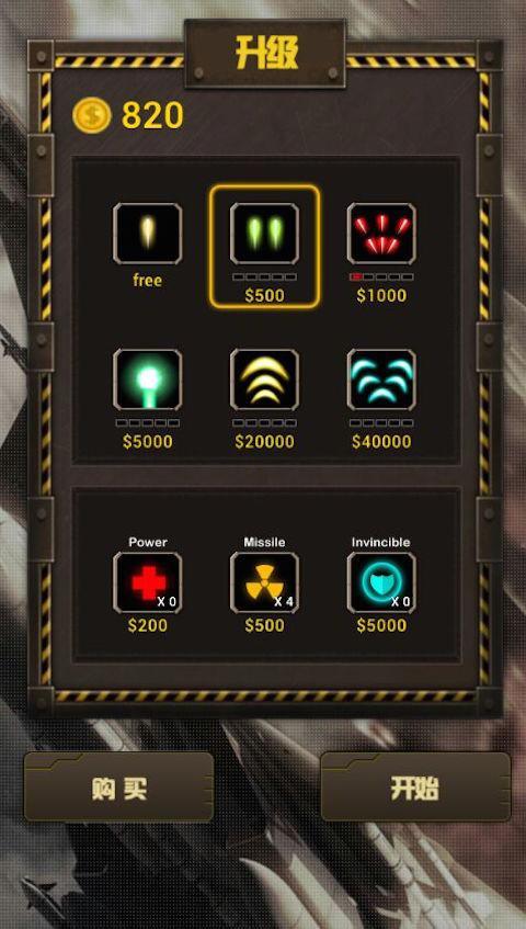 多种超级武器、华丽的爆炸和激情的音效肯定会让您爱不释手!玩家可以通过激战获取金币来升级飞机的武器,可谓是越战越强,高级的武器会让您的攻击更上一层楼。