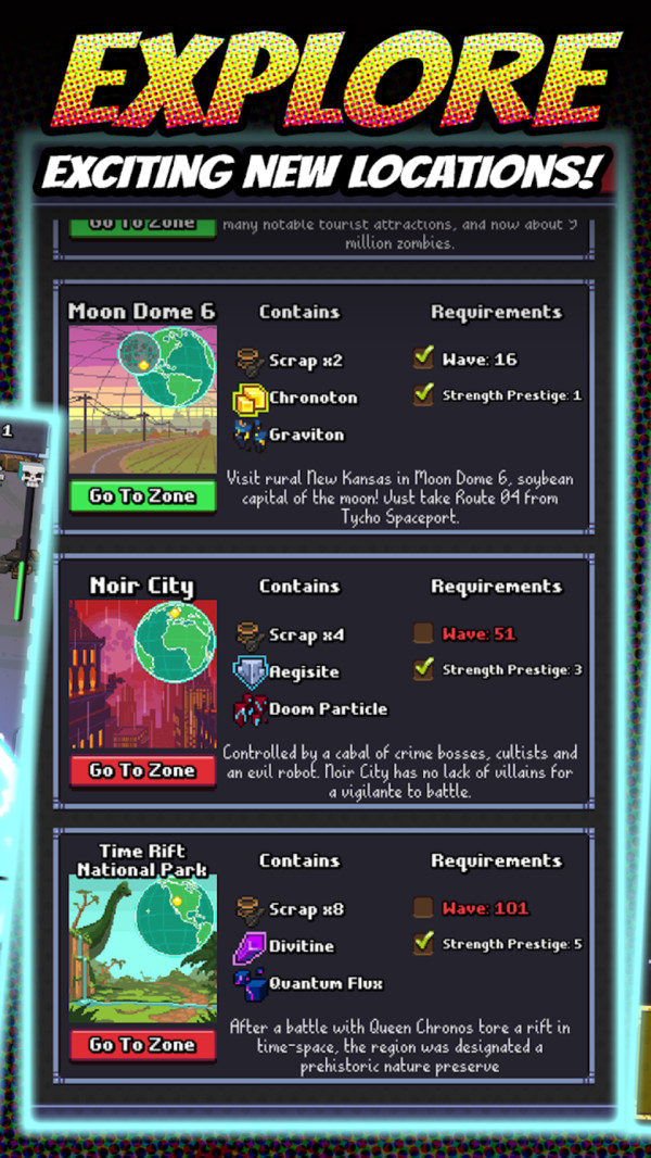2、消灭掉城市之中所有的奖励获得更多的奖励,像素风格的僵尸看起来不会过于恐怖。