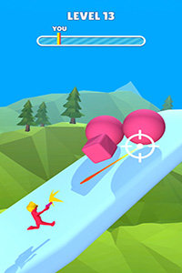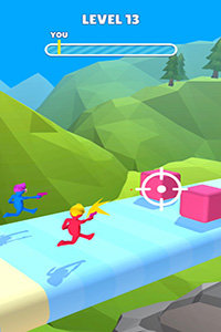 3、不断射击来开始你的挑战,与你的对手相继前行奔跑、躲避障碍