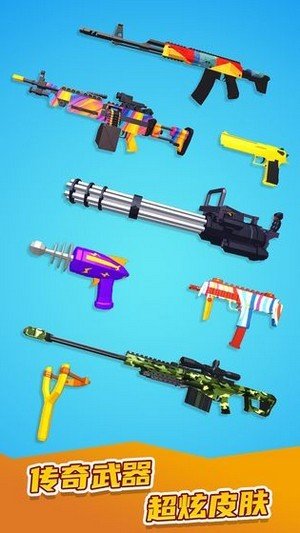 1、卡通画风的枪械射击玩法,海量的枪械可以解锁使用