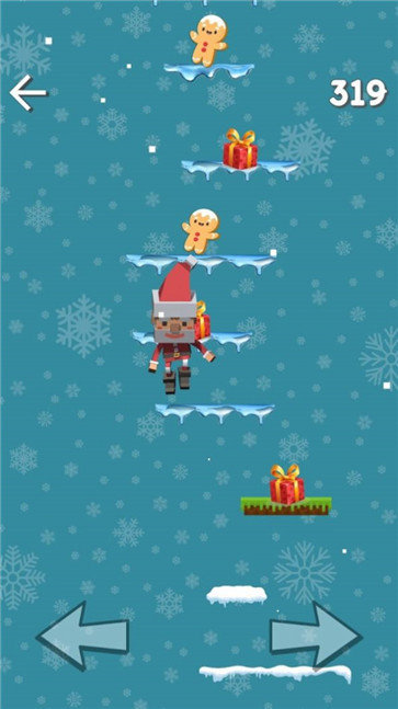 1.在这里来使用你的圣诞老人跳跃上升,轻松简单的操作,在关卡之中不断跳跃获取奖励