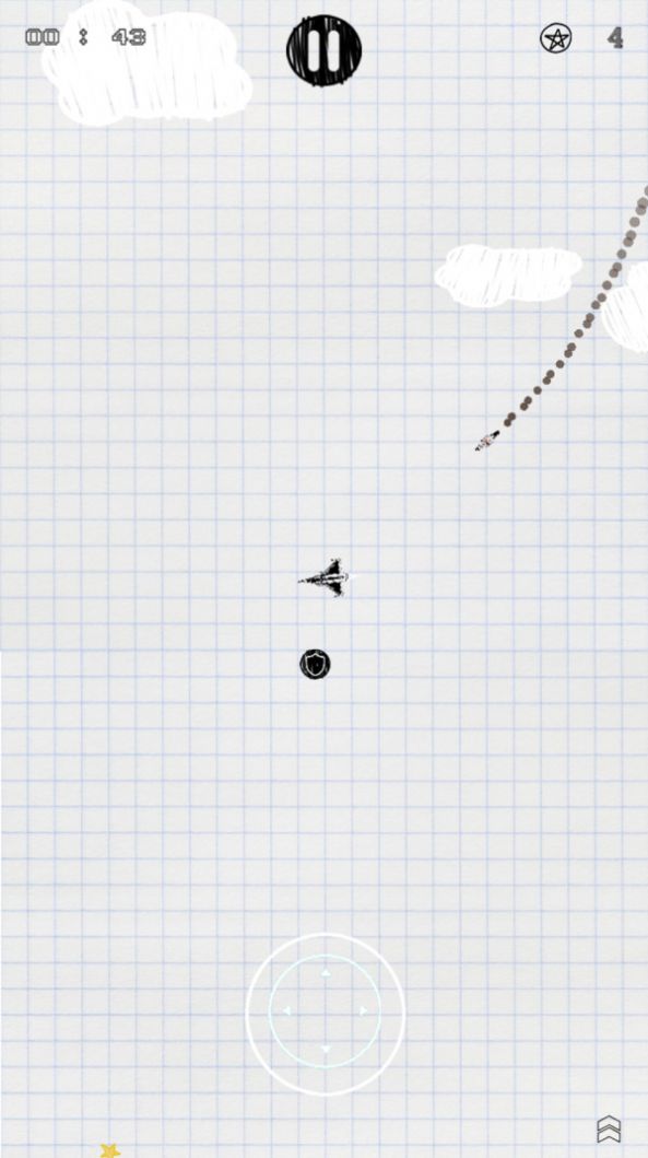 纸上飞机逃生是一个很有意思的黑白风格的游戏,玩家在这个游戏中可以看到的游戏画面是像是纸绘的,玩起来别有一番趣味哦,你还可以在这里去体验到一些别的鹅游戏乐趣,你还可以在这里不断闯,穿越过云海,躲避开障碍飞向你的终点吧,游戏中也有很多的不同的飞机在这里可以选择,你可以发射炮弹攻击你的敌人们!