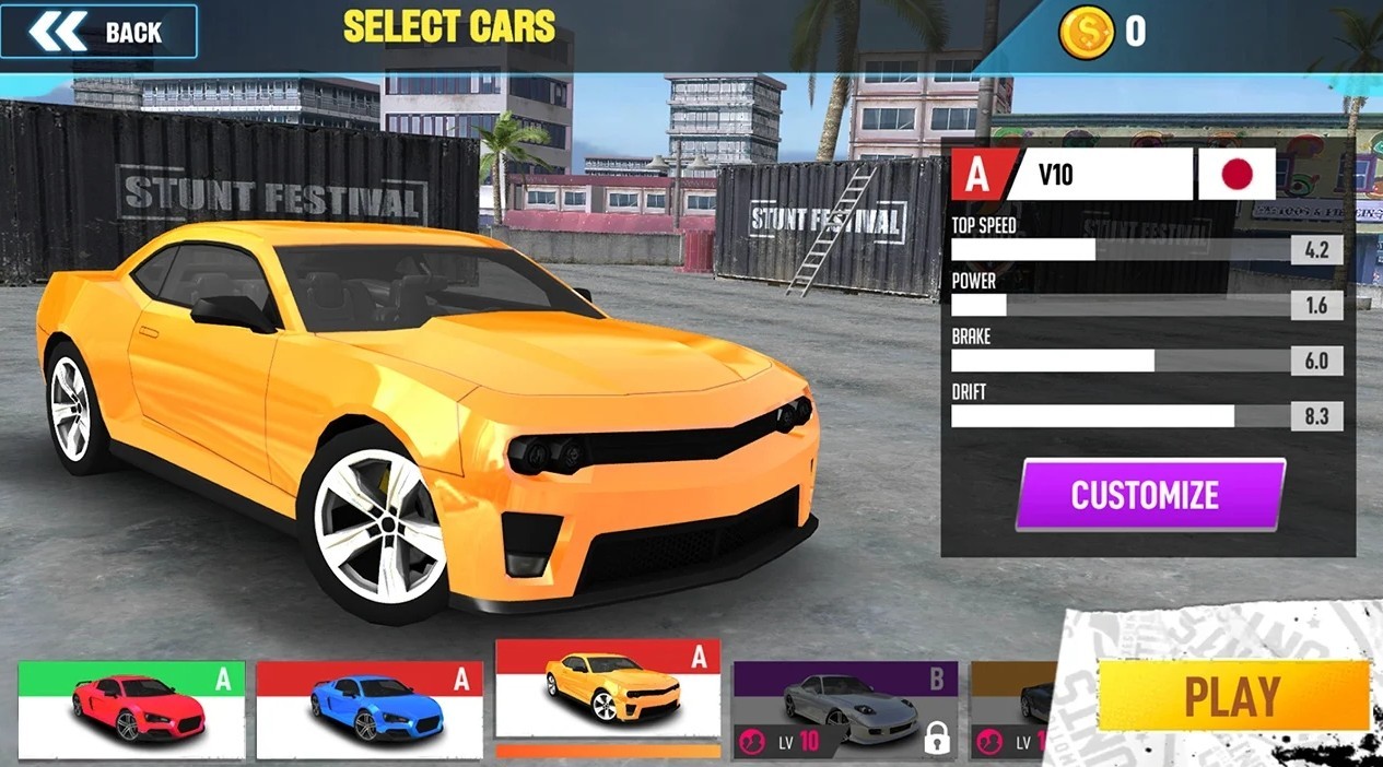 2、玩家在game中可以free的选择不同汽车进行挑战,根据玩家喜欢来选择。