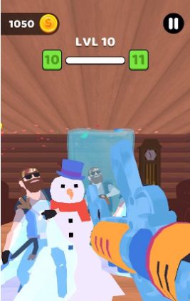 1、你要用这把神奇的雪球枪进行反击,利用敏捷的身手,快速将歹徒冻成冰块。