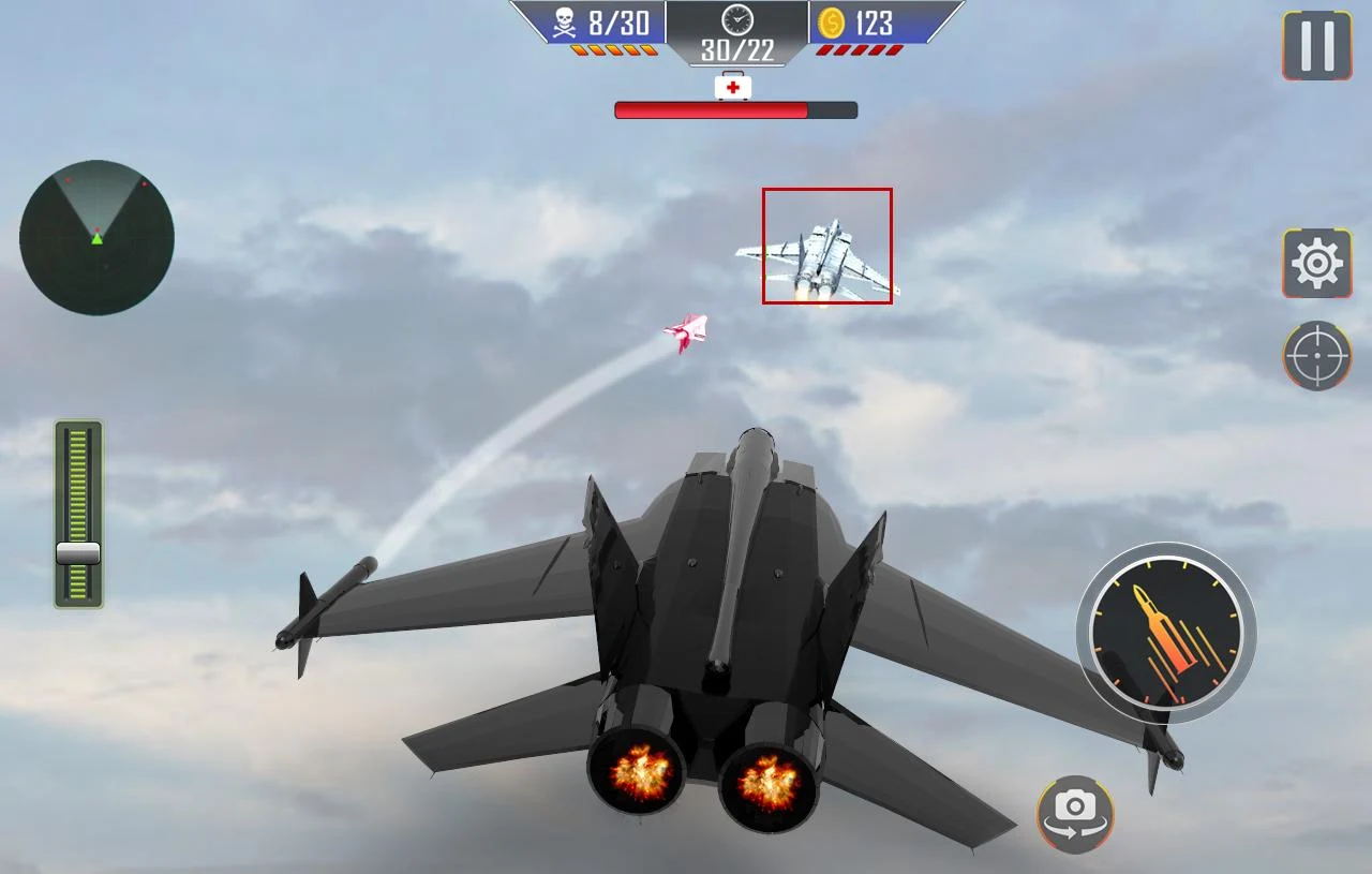 2、在让人肾上腺素飙升的空中格斗探险中击溃全部美国战机,享有速度最后的冲刺所产生的無限炫酷!